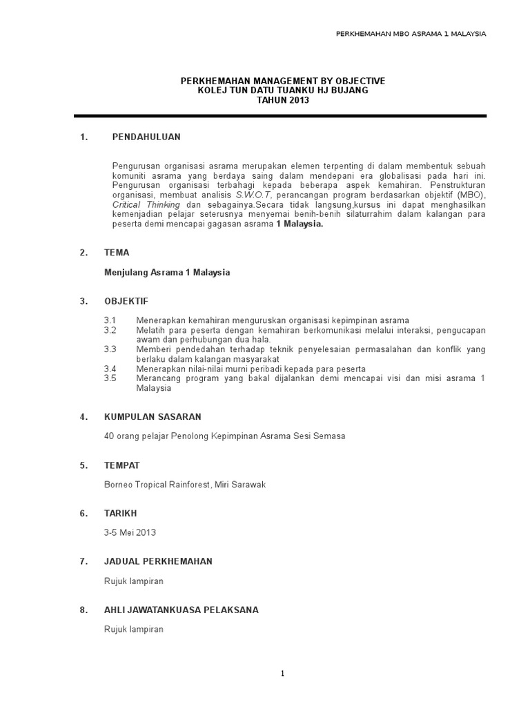 Contoh Kertas Kerja Pengurusan Acara
